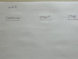 私はここ数年、年初にStart (始める)Stop(やめる) Continue(続ける)することを考えます。これはよく研修などで、学んだことを次に活かすための行動を考える時に使うフレームワークですが、シンプルで個人レベルでもとても使いやすいと思っています。まさに言葉の通り新しい年に始めること、やめること、続けることを考えるのです。